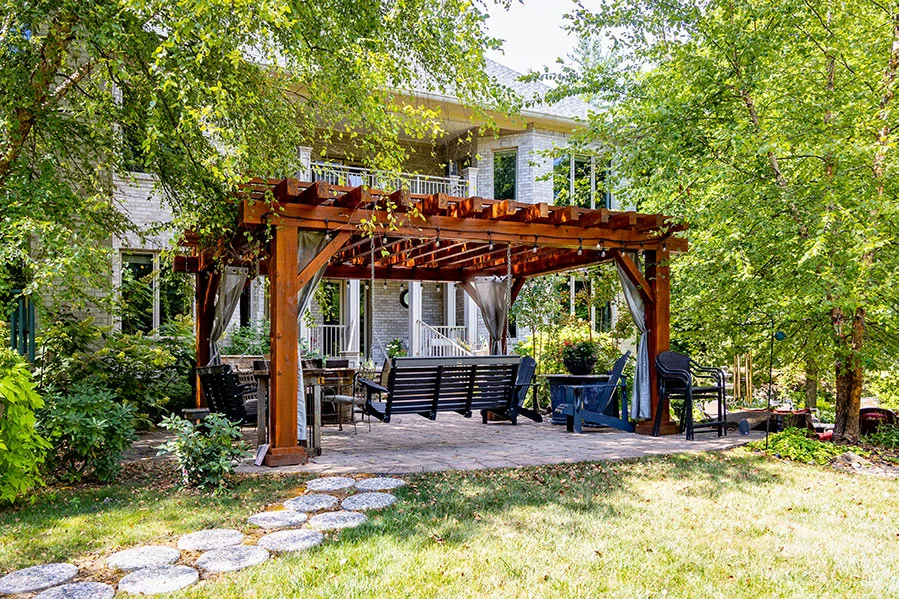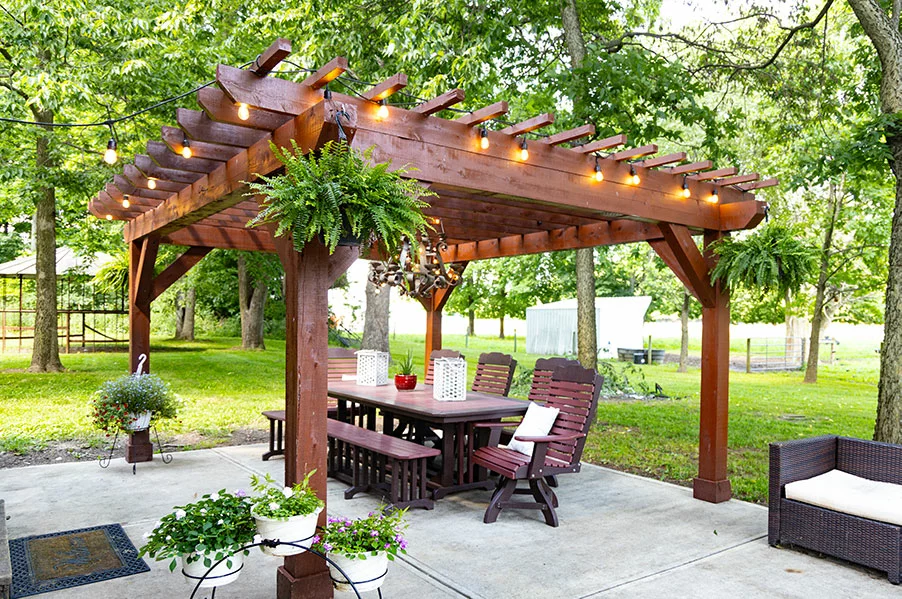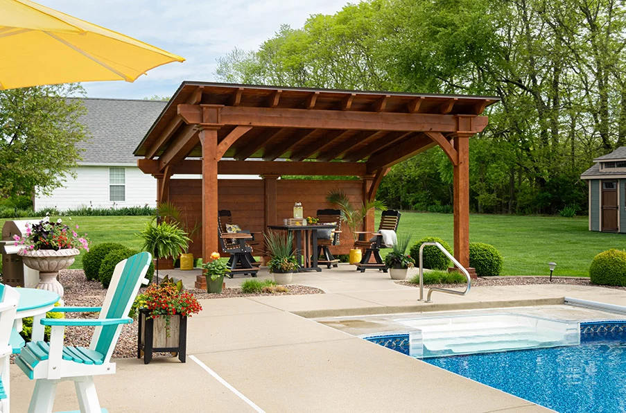 A 2-in-1 outdoor space that combines pergola and pavilion. Enjoy the strengths of both in one lovely structure.