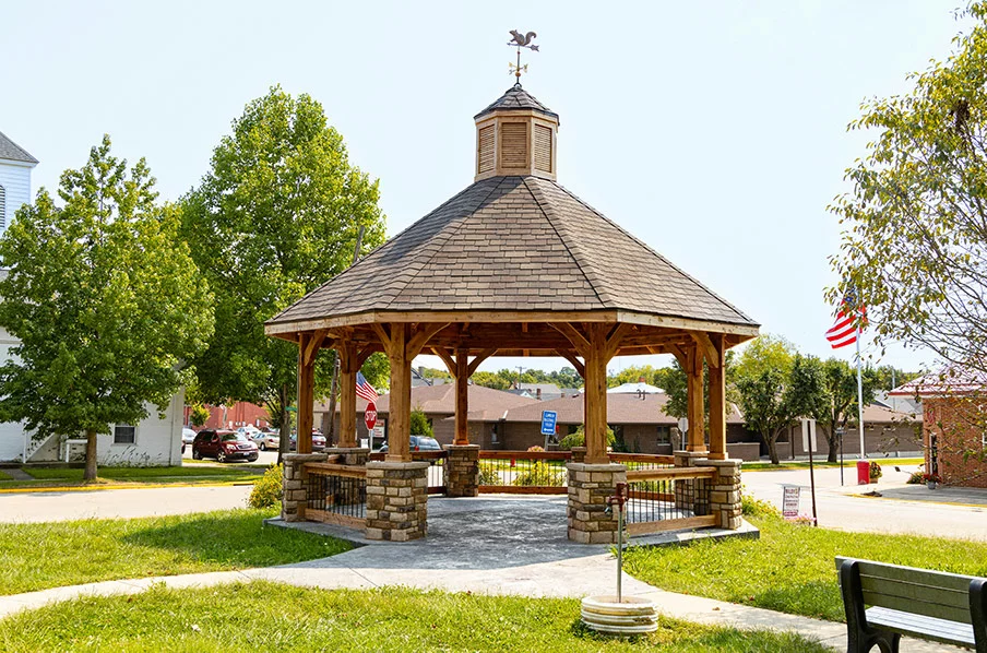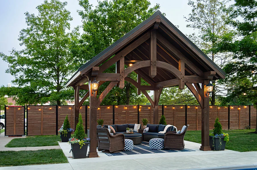 Gazebo vibes with a bit more luxury. Gather around food and games and enjoy your wood pavilion to the fullest.