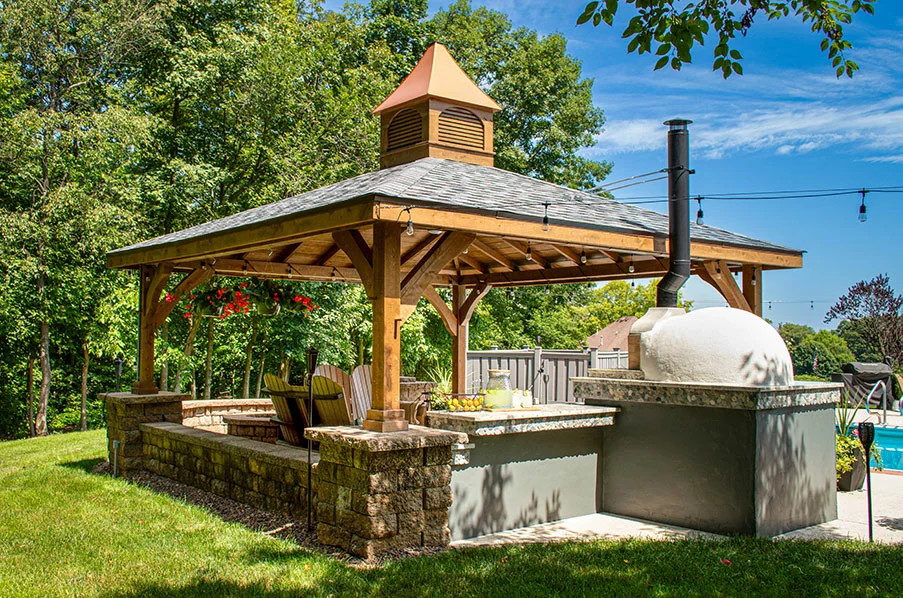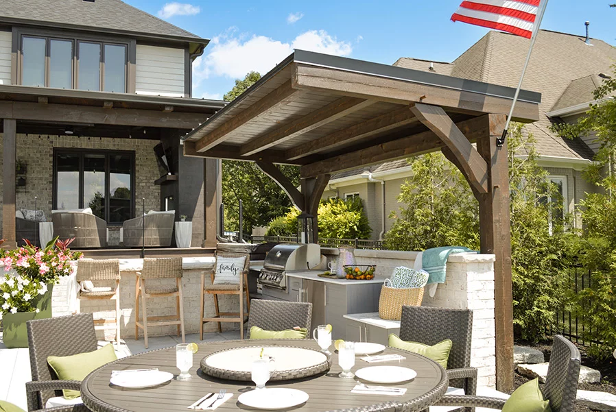 An accent piece is the perfect cover for your outdoor kitchen without the interference of extra posts.